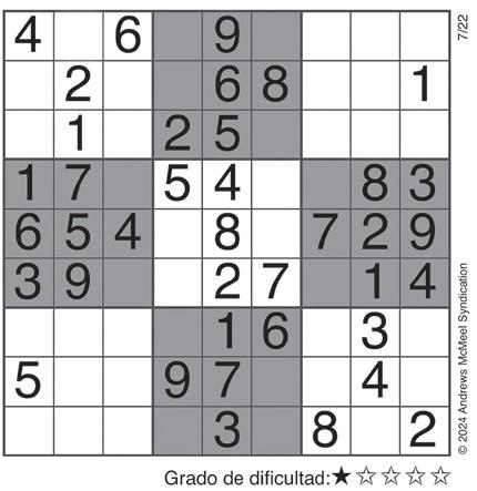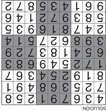Complete el recuadro de tal manera que cada fila, columna y cuadro de 3x3 tengan los números del 1 al 9.