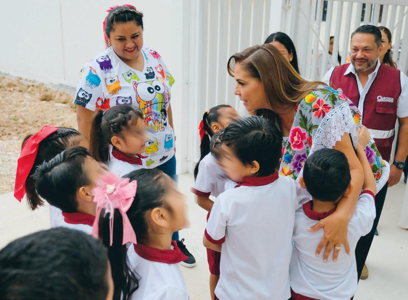 EDUCACIÓN. La gobernadora de Quintana Roo también anunció la construcción de un aula y arco-techo en un preescolar de la zona.