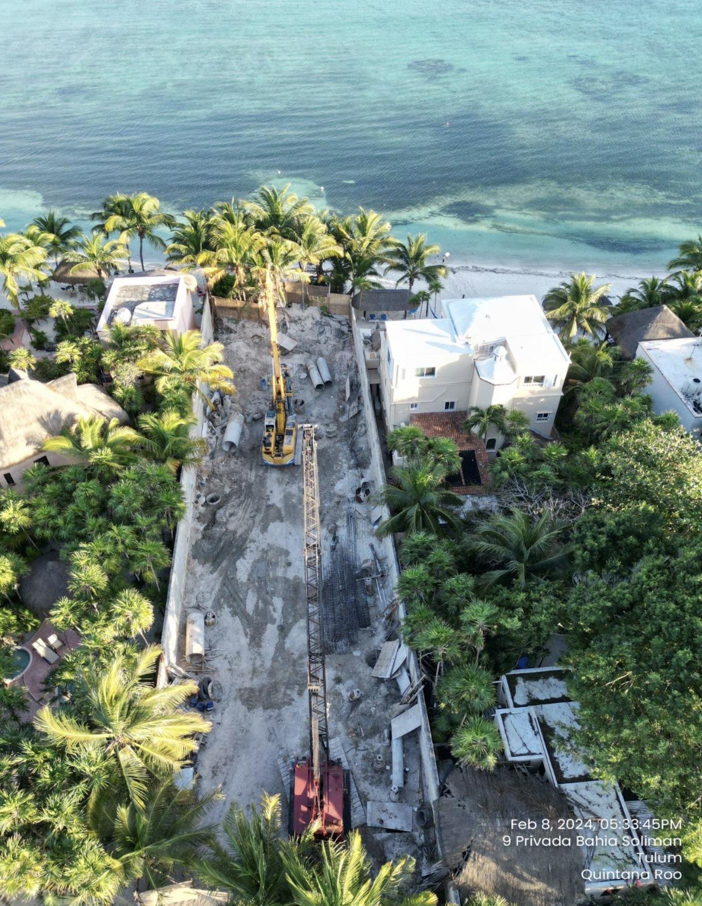 ILEGAL. Esta obra inició en noviembre de 2023, sin que los desarrolladores tuvieran un solo permiso. Jueces le otorgaron una suspensión y la Profepa y el municipio de Tulum le colocaron sellos de clausura y tapiaron el lugar