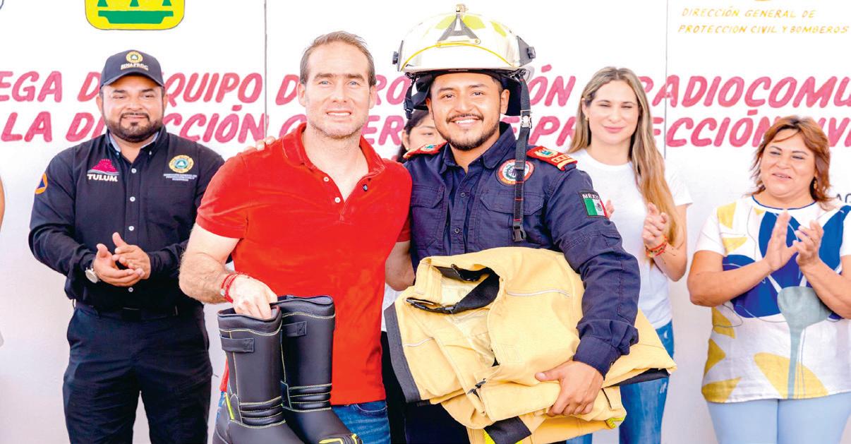 completos, integrados por botas, chaquetas, pantalones, cascos y sistemas de radiocomunicación, diseñados para la seguridad y comodidad de los bomberos en situaciones de emergencia. Por su parte, el jefe de bomberos, Benjamín Heredia, agradeció a nombre de sus compañeros y señaló que, gracias a esta entrega, Tulum forma parte del 20 por ciento de cuerpos de bomberos del país que cuentan con equipo nuevo y personalizado conforme a normativas internacio-