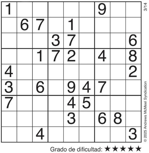 Complete el recuadro de tal manera que cada fila, columna y cuadro de 3x3 tengan los números del 1 al 9.