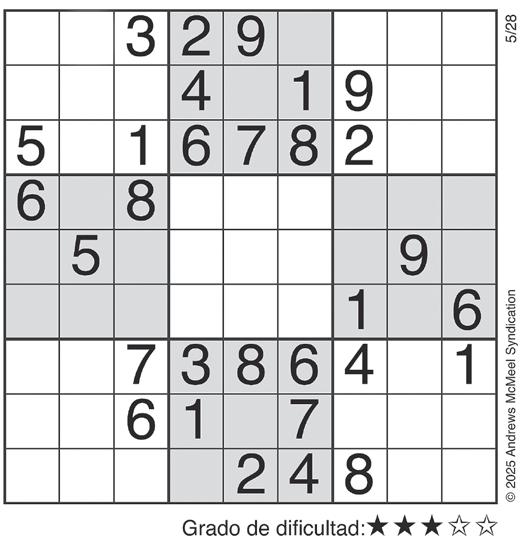 Complete el recuadro de tal manera que cada fila, columna y cuadro de 3x3 tengan los números del 1 al 9.
