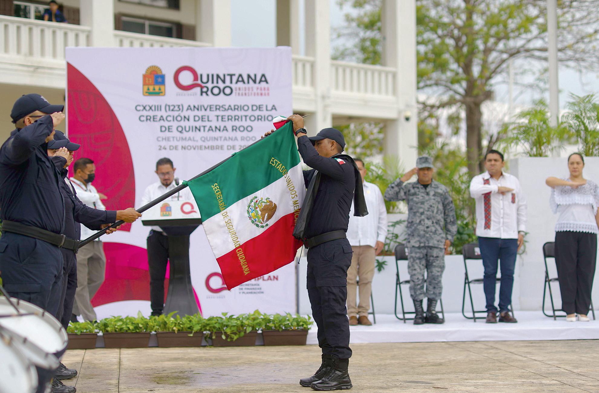 En el marco del 123 aniversario de la creación del Territorio de Quintana Roo, autoridades de los tres poderes del estado encabezaron la ceremonia cívica conmemorativa realizada ayer 24 de noviembre en Chetumal. El Gobierno estatal destacó que este acto honra la historia y el legado que dieron origen a la entidad, fortaleciendo la identidad, la unidad y el compromiso con su desarrollo.