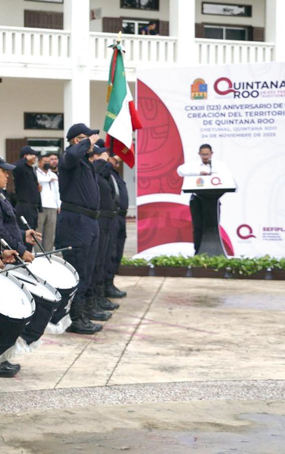 Autoridades de los tres poderes del estado encabezaron en Chetumal la ceremonia por el 123 aniversario de la creación del Territorio de Quintana Roo, acto que destacó la memoria histórica, la unidad y el compromiso con el desarrollo de la entidad LOCAL P. 3