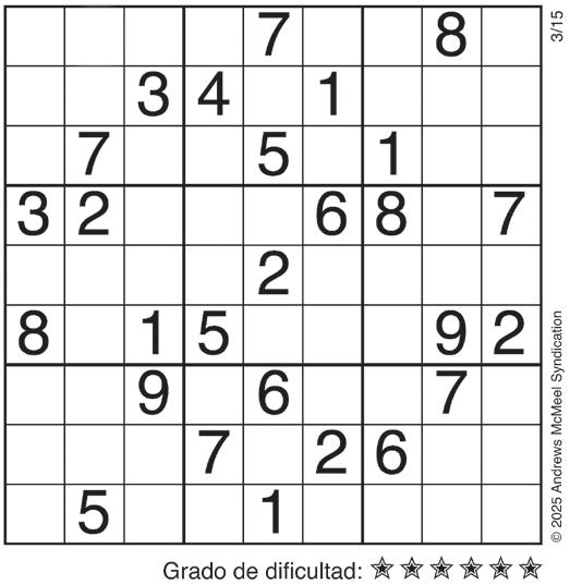Complete el recuadro de tal manera que cada fila, columna y cuadro de 3x3 tengan los números del 1 al 9.