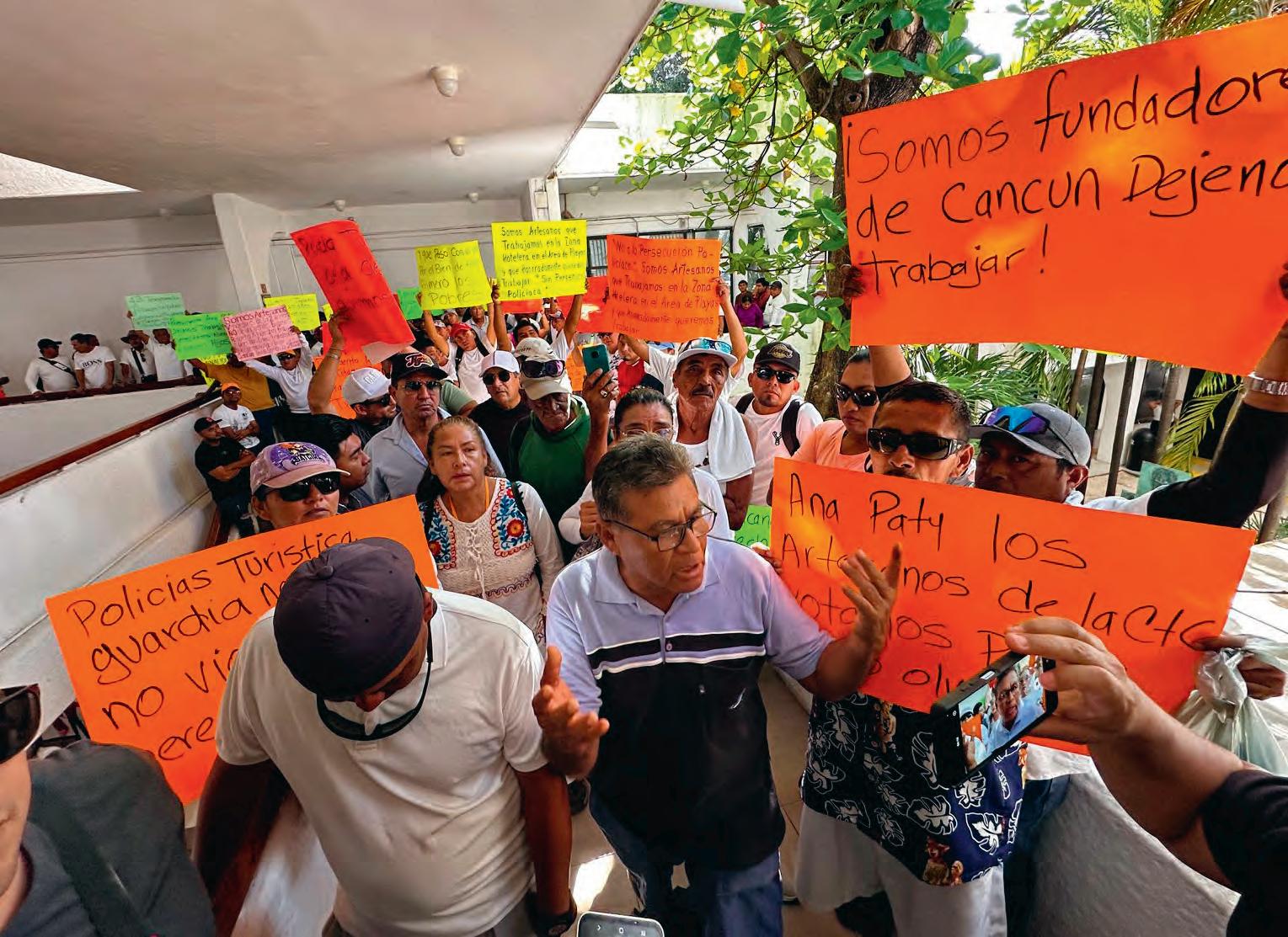 PROTESTA. Un grupo de al menos 200 comerciantes, en su mayoría artesanos que han trabajado en la Zona Hotelera durante al menos 20 años, exigieron permisos para poder laborar en las playas de la ciudad LOCAL P. 5