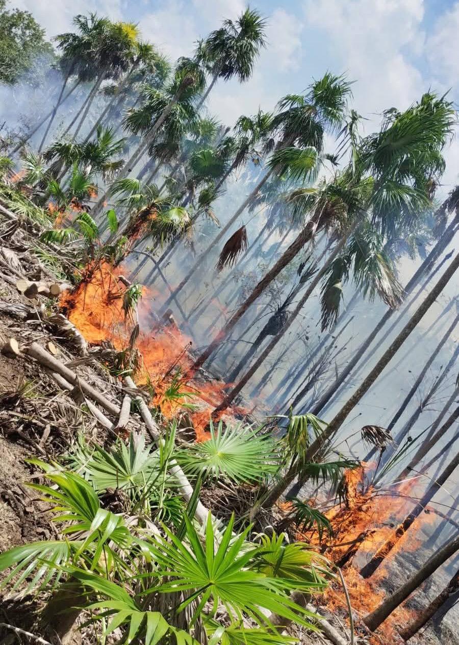 A seis días de iniciarse, el incendio registrado en la zona conocida como ‘La Ensenada’, en la isla de Holbox, permanece fuera de control y ha afectado al menos 100 hectáreas de vegetación, principalmente palma chit, de acuerdo con datos de la Comisión Nacional Forestal (Conafor).