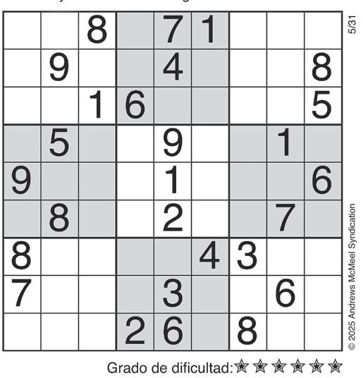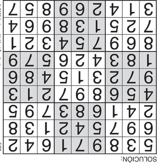 Complete el recuadro de tal manera que cada fila, columna y cuadro de 3x3 tengan los números del 1 al 9.