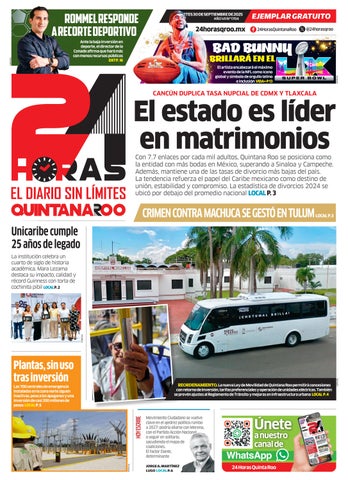 Con 25 premios en los World Travel Awards 2025, Quintana Roo reafirma su liderazgo turístico. Mara Lezama recibió galardón por su impulso al sector y apoyo a comunidades mayas LOCAL P. 5