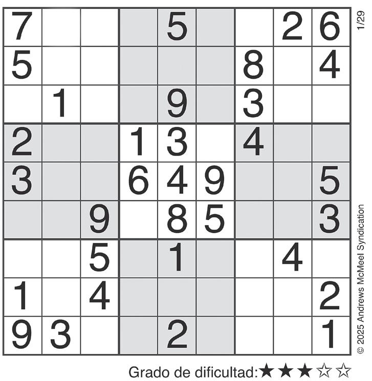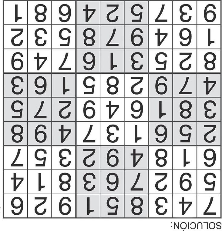 Complete el recuadro de tal manera que cada fila, columna y cuadro de 3x3 tengan los números del 1 al 9.