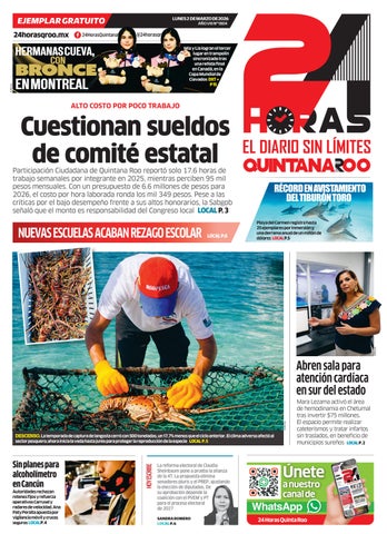Participación Ciudadana de Quintana Roo reportó solo 17.6 horas de trabajo semanales por integrante en 2025, mientras perciben 95 mil pesos mensuales. Con un presupuesto de 6.6 millones de pesos para 2026, el costo por hora laborada ronda los mil 349 pesos. Pese a las críticas por el bajo desempeño frente a sus altos honorarios, la Sabgob señaló que el monto es responsabilidad del Congreso local LOCAL P. 3