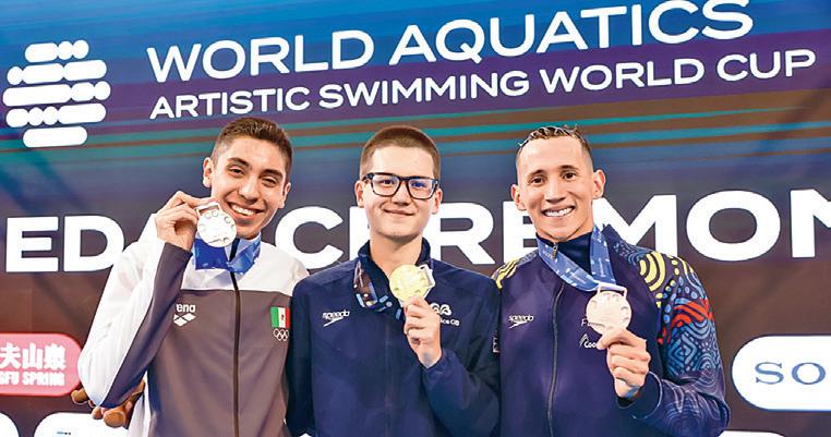 La participación de México en la Copa del Mundo de Natación Artística en Markham 2025, dejó a Diego Villalobos como segundo lugar en la final individual técnica y con la presea de plata, que minutos después aumentó con un bronce en dueto mixto técnico junto a su compatriota, Regina Alférez. El nadador mexicano logró su segundo lugar con una calificación de 214.8667 unidades, que lo dejaron por debajo únicamente del británico Ranjuo Tomblin, mientras que junto a Alférez, ambos sumaron un 191.3851 total para acompañar a los equipos de China y España en el podio final.