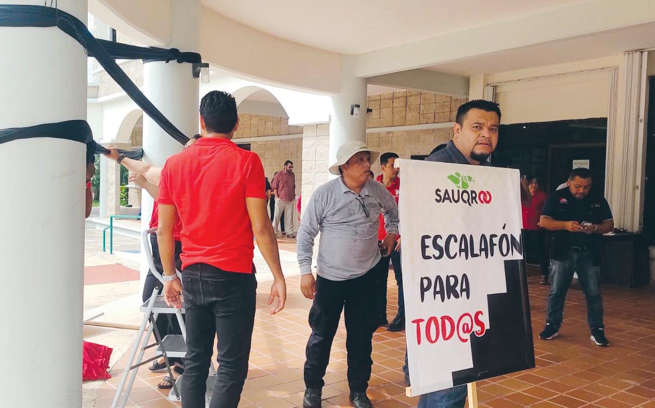Desde la explanada del Palacio Municipal, Mario Machuca Sánchez, líder de la CROC en Benito Juárez, reiteró la demanda de establecer legalmente la jornada de 40 horas semanales, una iniciativa que, aseguró, sigue “congelada” en la Cámara de Diputados. Además, propuso eliminar el ISR a quienes ganan entre uno y tres salarios mínimos. “Queremos las 40 horas y un salario íntegro que no se pierda en impuestos”, exigió.