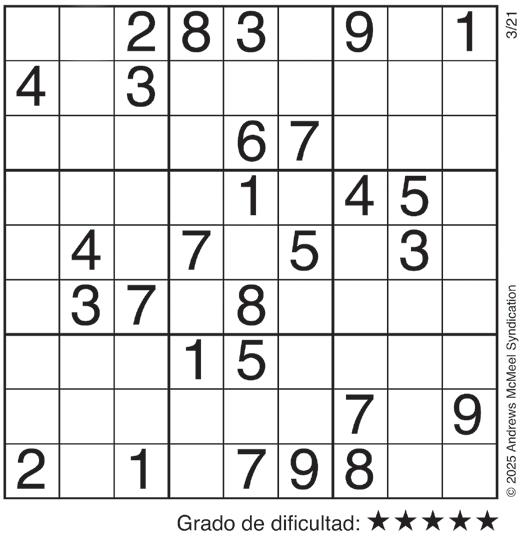 Complete el recuadro de tal manera que cada fila, columna y cuadro de 3x3 tengan los números del 1 al 9.