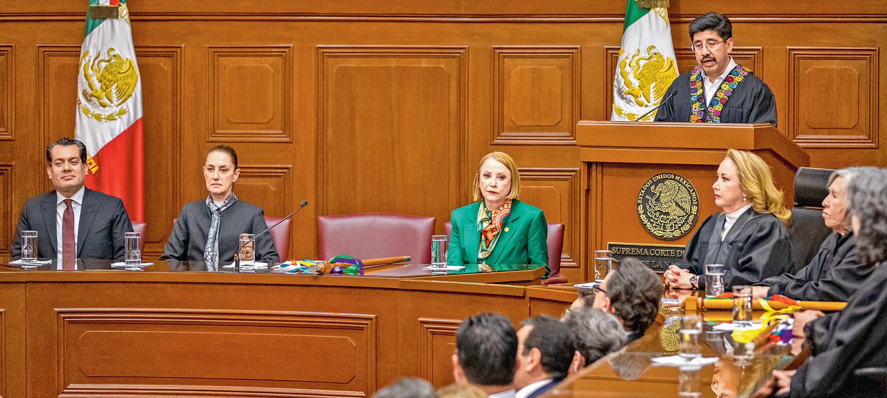 En seguridad, reportó reducciones: homicidio doloso 25 por ciento, delitos de alto impacto 20 por ciento, robo de vehículo con violencia 31 por ciento y feminicidio 34 por ciento. Resaltó la Reforma Judicial con elección de jueces y ministros, y el reconocimiento de pueblos indígenas y afromexicanos como sujetos de derecho público.