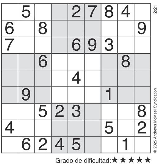 Complete el recuadro de tal manera que cada fila, columna y cuadro de 3x3 tengan los números del 1 al 9.