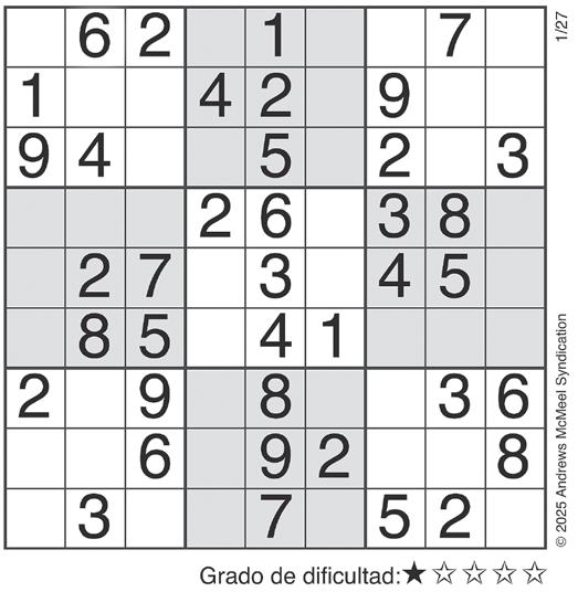 Complete el recuadro de tal manera que cada fila, columna y cuadro de 3x3 tengan los números del 1 al 9.