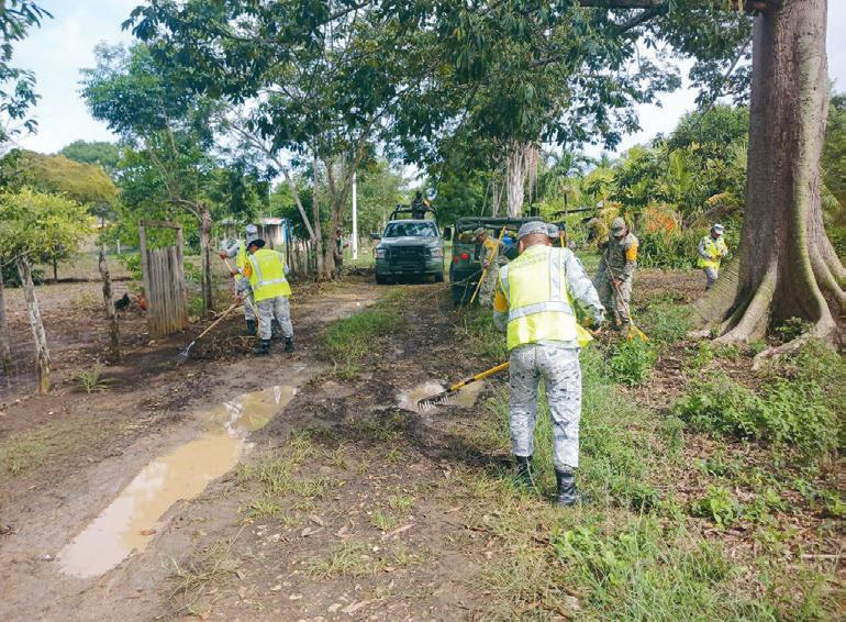 DAÑOS. Tramos carreteros dañados por los deslaves que provocaron las lluvias del fin de semana e inundaciones en comunidades de Bacalar. En la ribera del río Hondo, en el municipio de Othón P. blanco, la zona cañera fue de las más afectadas. A las tareas de limpieza se unieron elementos de la Guardia Nacional