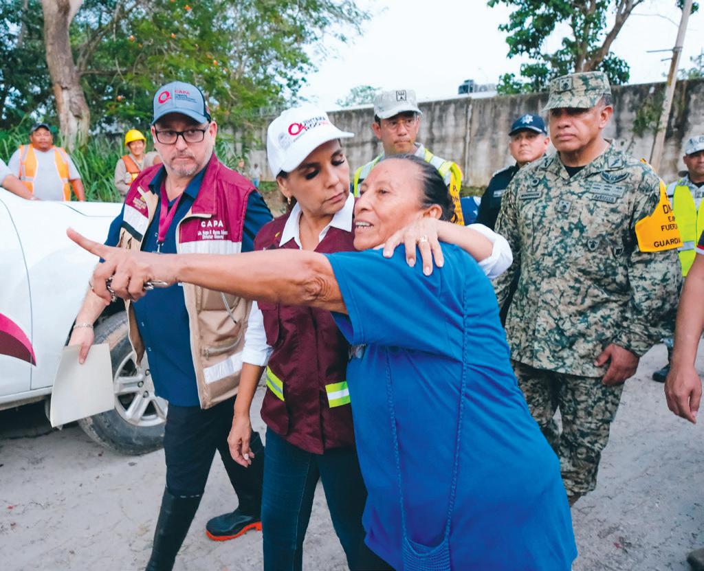 Para atender y escuchar a las personas que tuvieron afectaciones por las fuertes lluvias de días pasados, la gobernadora Mara Lezama Espinosa recorrió las calles Dos Aguadas y 5 de Febrero, de la colonia Proterritorio de Chetumal.