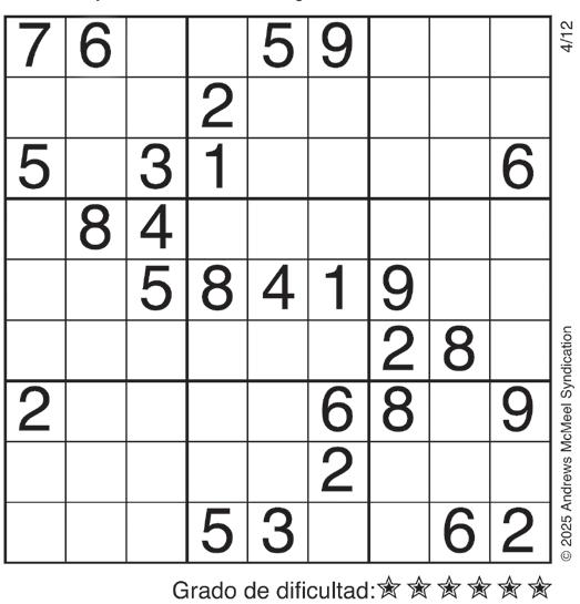 Complete el recuadro de tal manera que cada fila, columna y cuadro de 3x3 tengan los números del 1 al 9.