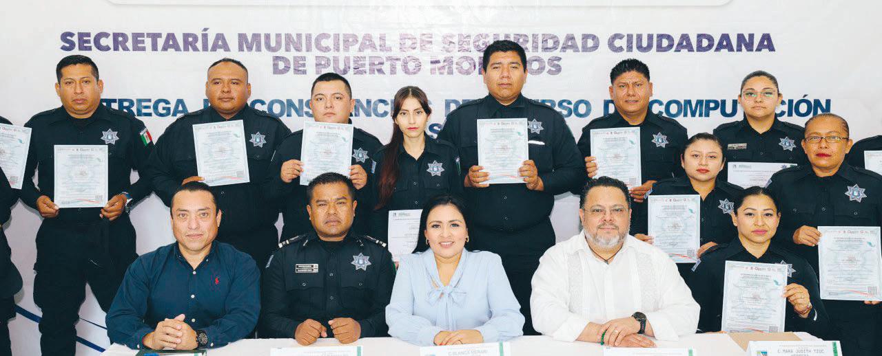 Un total de 17 elementos de la Secretaría de Seguridad Ciudadana de Puerto Morelos concluyeron el curso de Computación Básica, como parte de un esfuerzo coordinado entre los tres órdenes de Gobierno y la Mesa Ciudadana de Seguridad y Justicia del municipio, con el objetivo de fortalecer la atención a la ciudadanía.