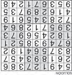 Complete el recuadro de tal manera que cada fila, columna y cuadro de 3x3 tengan los números del 1 al 9.