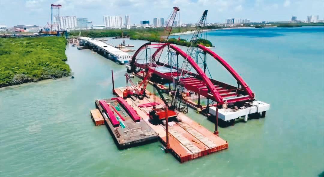 La megaobra se compone de un puente de 8.8 kilómetros, un arco metálico de 103 metros de longitud, dos entronques de acceso que suman 2.4 kilómetros —uno hacia el bulevar Luis Donaldo Colosio y otro hacia el bulevar Kukulcán—, así como ci-