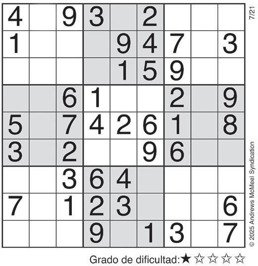 Complete el recuadro de tal manera que cada fila, columna y cuadro de 3x3 tengan los números del 1 al 9.