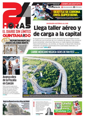 El proyecto de la compañía Zenith Aeronáutica en el Podebi iniciará en 2026 con una inversión de 24.3 millones de dólares. Esta iniciativa busca consolidar a Quintana Roo como un nodo logístico estratégico hacia Centroamérica y las Antillas, al impulsar el desarrollo industrial mediante una gestión coordinada entre autoridades federales y el sector privado LOCAL P. 3