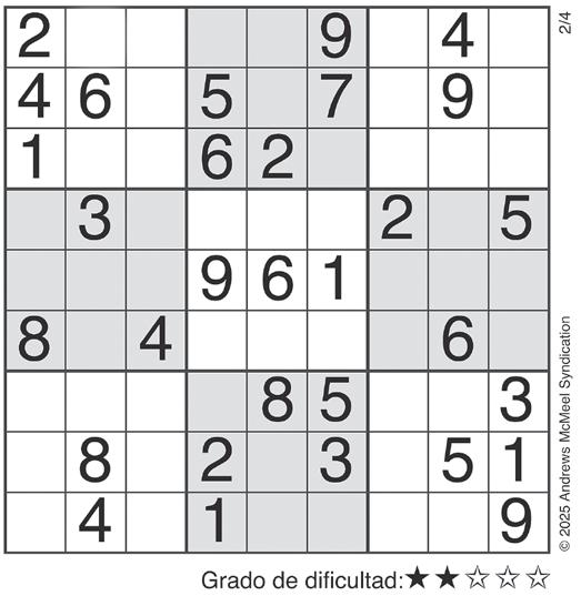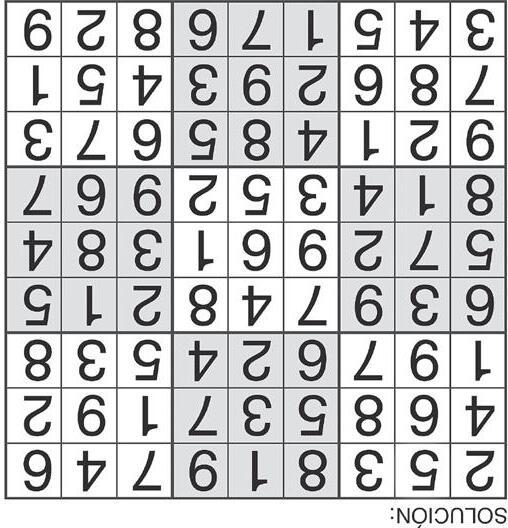 Complete el recuadro de tal manera que cada fila, columna y cuadro de 3x3 tengan los números del 1 al 9.