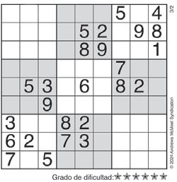 Complete el recuadro de tal manera que cada fila, columna y cuadro de 3x3 tengan los números del 1 al 9.