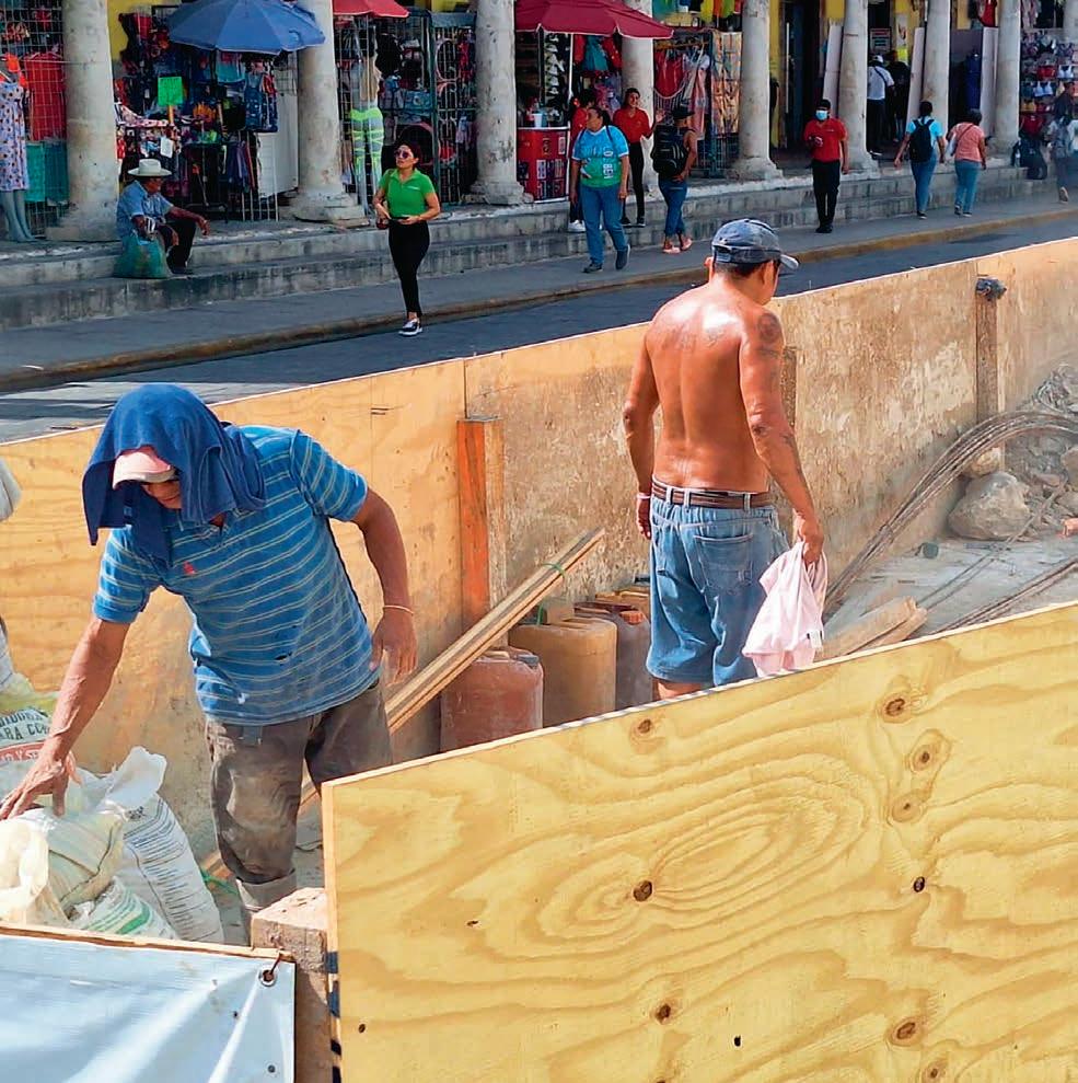 En esas inmediaciones trabaja Juan José, yucateco originario de Homún, pero por azares del destino terminó viviendo en Tabasco y ahora su necesidad trabajo lo regresaron a su tierra, para laborar en la construcción del Corredor Turístico y Gastronómico de la calle 60, quien confirma que es un oficio duro, pero que se ha acostumbrado, ya que desde sus 11 años de edad, ya era ayudante con su papá para llevar uno pesos a la casa.