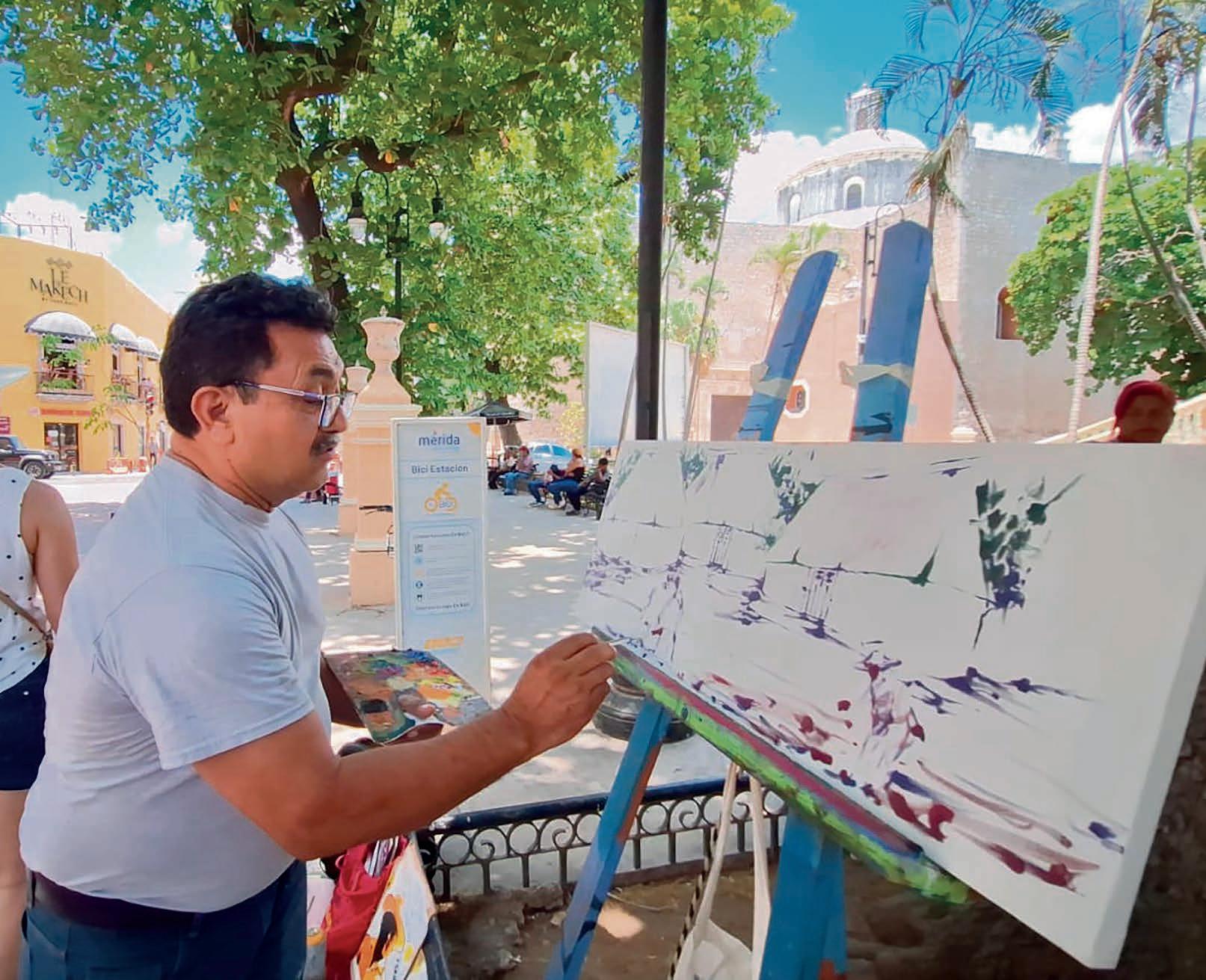 OPORTUNIDAD.El artista busca transmitir sus conocimientos a aquellas personas que les interese la pintura y los espera en el Parque Hidalgo del Centro Histórico de Mérida.