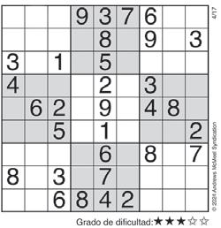 Complete el recuadro de tal manera que cada fila, columna y cuadro de 3x3 tengan los números del 1 al 9.