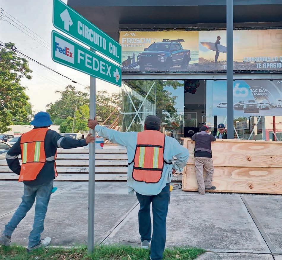 Ante la alerta del fenómeno meteorológico, empresas y autoridades se organizan para seguir trabajando, como la CFE que dispone de dos mil 209 electricistas, 360 grúas, 572 vehículos, 68 plantas de emergencia, seis vehículos todo terreno, 27 equipos de comunicación móvil y cinco helicópteros, mientras que el Ayuntamiento acelera el recorte de ramas, retiro de basura y desazolve de alcantarillas. ADO, aeropuerto y hoteles siguen trabajando con medidas de seguirad LOCAL PÁGINA 3 Y 4