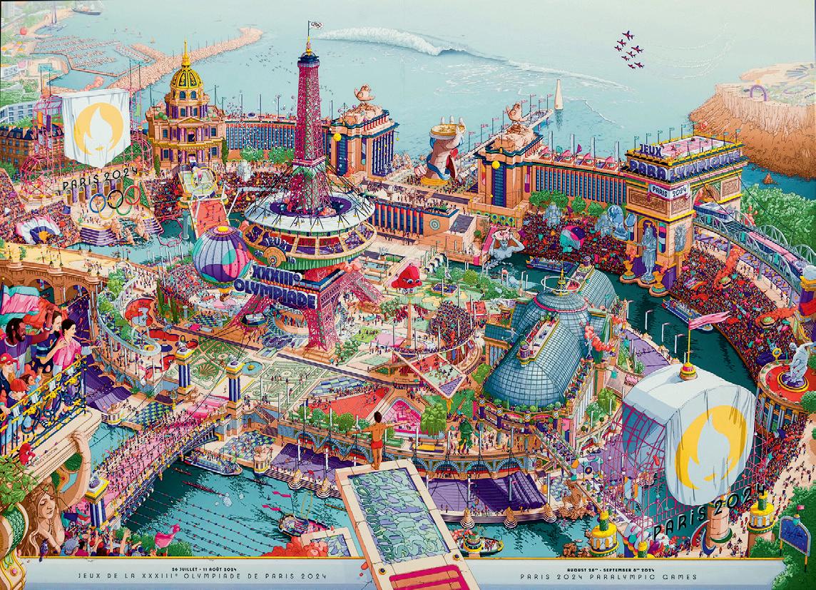Cada edición de los Juegos Olímpicos desde 1912 cuenta con su propio cartel. Para esta trigésimo tercera edición se trata de un díptico con una vertiente olímpica y otra paralímpica.