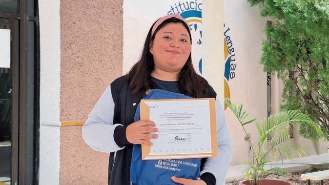 Mariana Azcorra Rivas, estudiante de la Facultad de Psicología de la Universidad Autónoma de Yucatán (UADY), fue galardonada con el primer lugar del Concurso de Cuento Ilustrado que organizó la Dirección General de Vinculación Universitaria de esta casa de estudios en el marco de la Feria Internacional de la Lectura Yucatán (FILEY) 2024. Con la obra “Te llevo conmigo”, la joven se hizo acreedora a una beca del Centro Institucional de Lenguas (CIL) con valor de más de tres mil pesos para estudiar cualquier idioma durante el periodo agosto-diciembre 2024, así como la publicación de su obra, una tarjeta de regalo de la Librería UADY con valor de mil 500 pesos y el respectivo reconocimiento. Al respecto, Mariana detalló que su texto nació de una pérdida personal, el fallecimiento de su abuelita; además dijo, desde pequeña acostumbraba a escribir sus vivencias, ya sean tristes o felices, por lo que al pasar ese difícil momento lo redactó para atesorarlo en un futuro. “Al ver la convocatoria del concurso decidí compartir ese momento de mi vida,