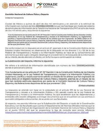 Aunque su equipo de enlace con la Unidad de Transparencia afirma que no se tiene un registro de cuántos atletas hay actualmente integrados al Registro Nacional de Cultura Física y Deporte, en el apartado de deportistas que han sido beneficiados con un estímulo deportivo solo se cuentan con 209 integrantes.