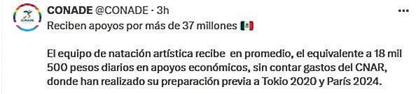 A pesar de hacer pública la inversión, que de acuerdo con la Comisión Nacional de Cultura Física y Deporte han realizado con la Selección Nacional de Natación Artística equivalente a 37 millones 194 mil 338 pesos, la misma instancia no reconoce a varios atletas de disciplinas acuáticas dentro del Departamento de Becas y Reconocimientos, al menos en el tiempo comprendido entre 2018 y 2023.