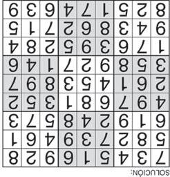 Complete el recuadro de tal manera que cada fila, columna y cuadro de 3x3 tengan los números del 1 al 9.