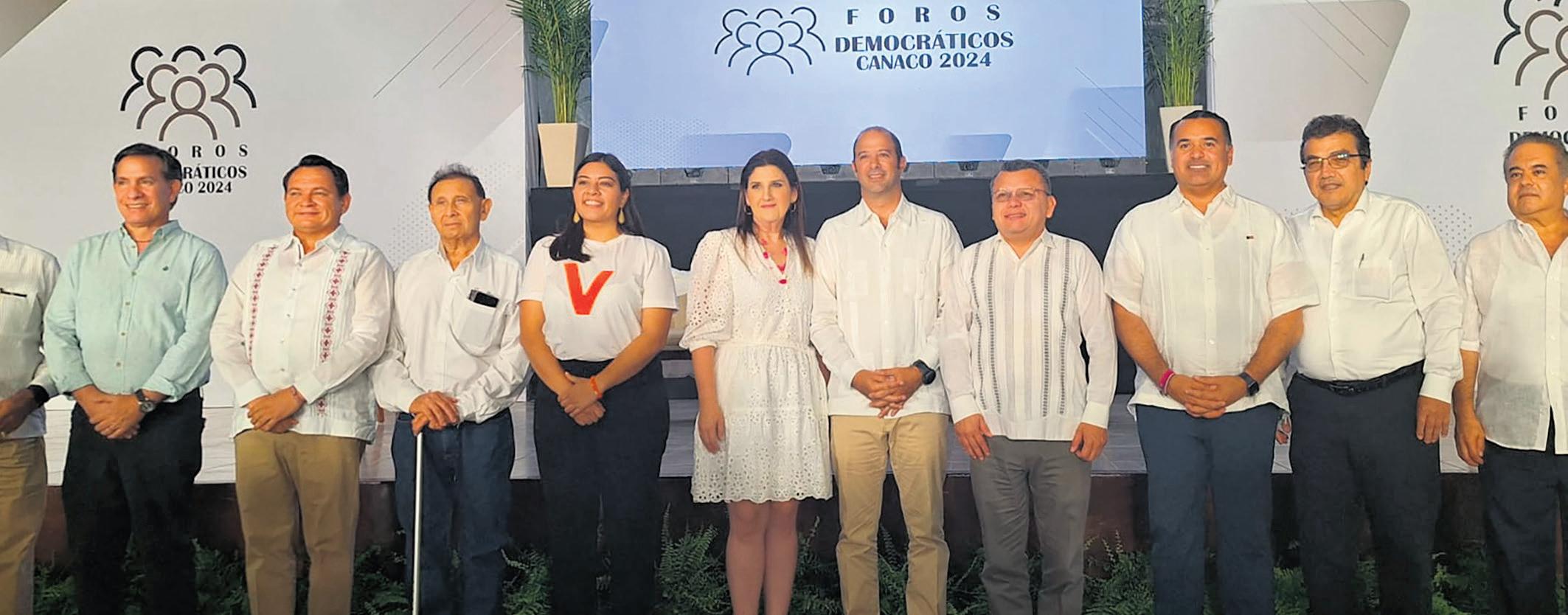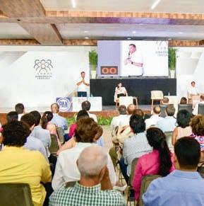 Al último Foro Democrático, organizado por la Canaco Servytur Mérida, asistieron a exponer sus propuestas Renán Barrera Concha, Joaquín Díaz Mena y Vida Gómez, la ausente fue Jazmín López Manrique, del PRD PÁGINA. 5