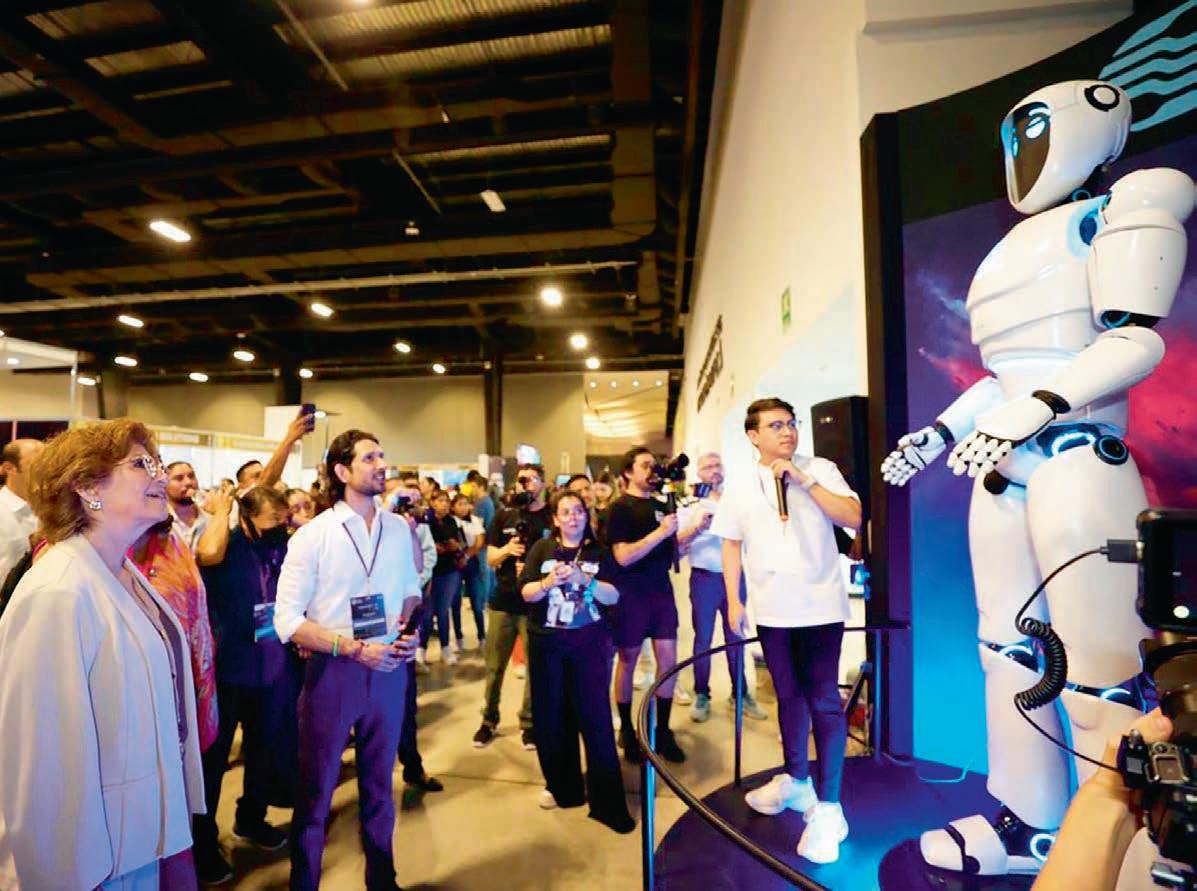 quienes participaron con el objetivo de aumentar en las nuevas generaciones el interés en estudiar programas académicos de corte tecnológico para que puedan acceder a mejores empleos, salarios, los cuales, actualmente se concentran en dicho sector. En esta ocasión participan más de 11 mil personas, hay 94 ponentes, más de 35 concursos y talleres. Ante estudiantes de bachillerato y de instituciones de educación super ior, así como de Dorothy Ngutter, cónsul general de Estados Unidos en Mérida y el alcalde de la capital,Alejandro Riz Castro, la encargada del Despacho del Gobernador destacó que en esta edición niñas y niños de escuelas Primarias también tendrán la oportunidad de adentrarse en el fascinante mundo de la tecnología y la innovación.