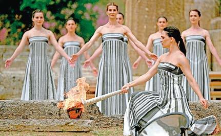 más inclusivos, más urbanos y más sostenibles. Serán los primeros con una paridad total de género porque el COI ha otorgado exactamente el 50% de las cuotas olímpicas a atletas mujeres y hombres”, agregó. Tras la ceremonia en la que se vio por primera vez la llama olímpica que llegará hasta París, la actriz griega Mary Mina en su papel como Suma Sacerdotisa comenzó el ya también tradicional relevo de la antorcha olímpica, siendo el primer elegido el griego Stéfanos Ntouskos,