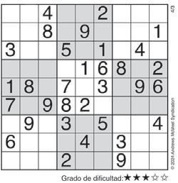 Complete el recuadro de tal manera que cada fila, columna y cuadro de 3x3 tengan los números del 1 al 9.