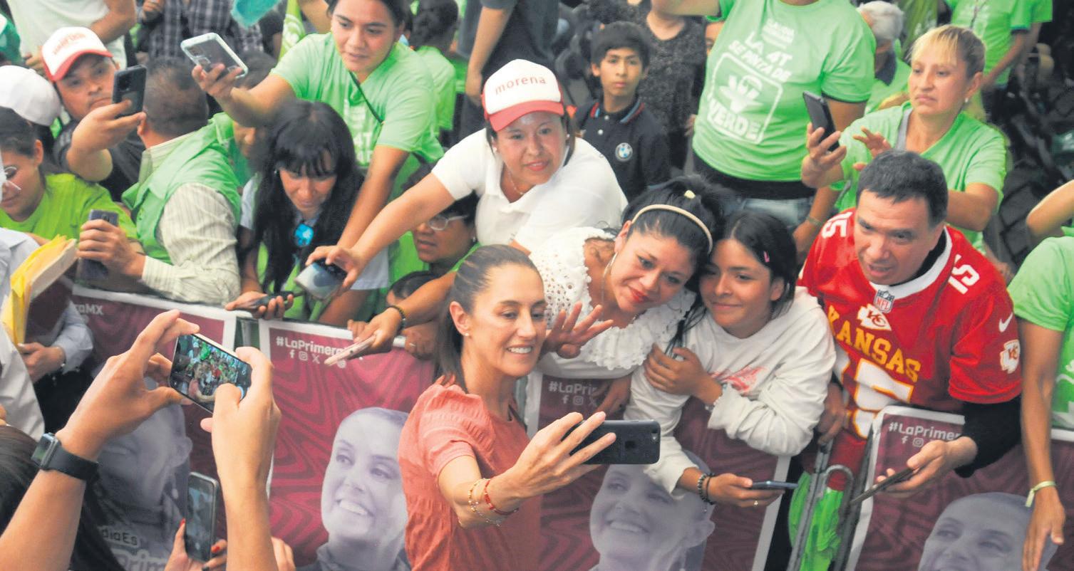 El autobús, decorado en rosa mexicano, lleva imágenes de la candidata y sus frases motivacionales.
