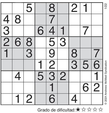 Complete el recuadro de tal manera que cada fila, columna y cuadro de 3x3 tengan los números del 1 al 9.
