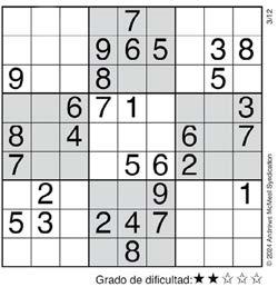 Complete el recuadro de tal manera que cada fila, columna y cuadro de 3x3 tengan los números del 1 al 9.