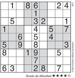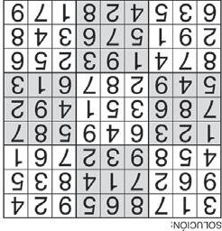 Complete el recuadro de tal manera que cada fila, columna y cuadro de 3x3 tengan los números del 1 al 9.
