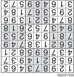 Complete el recuadro de tal manera que cada fila, columna y cuadro de 3x3 tengan los números del 1 al 9.