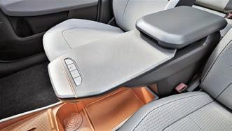 El reposabrazos, en dos alturas, separa al conductor del acompañante e integra una corredera/deslizante y un gran espacio de almacenamiento para dejar distintos objetos. Kia se ha inspirado en la naturaleza para elegir los colores, mate-